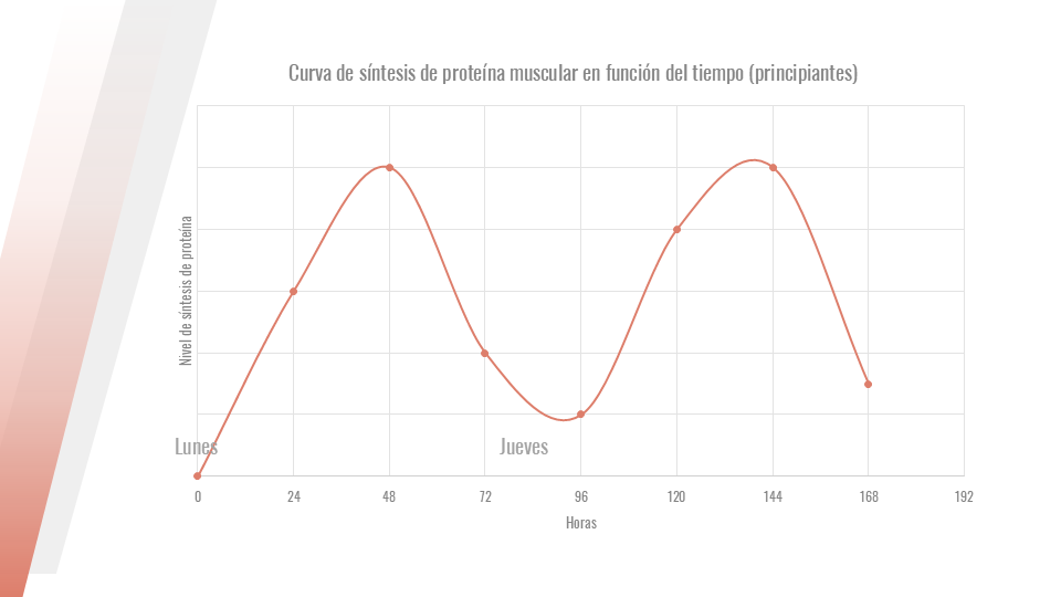 Existe mayor estimulo de la síntesis proteica (MPS): después de una sesión intensa, el cuerpo eleva la síntesis de proteínas hasta por 72 horas (Schoenfeld B. &., 2018), entrenar al término de este lapso, activa nuevamente este proceso.